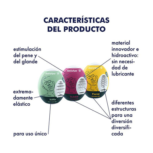 SATISFYER - 3 HUEVOS MASTURBADORES RIFFLE, BUBBLE & FIERCE