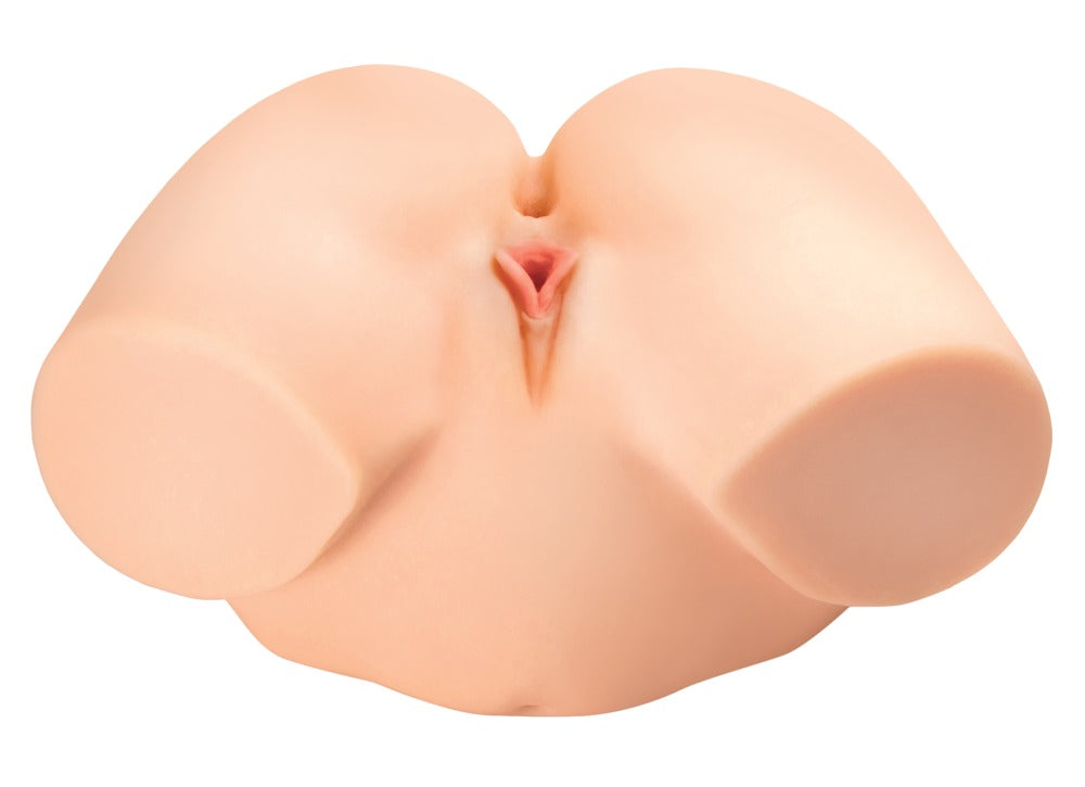 The ultimate realistic sexual pleasure in any position! The Torso-Masturbator 360° Banger von PDX Plus has an inviting vagina and anus hole. It is a realistic replica of a torso with large buttocks, the top part of the legs and the bottom part of the stomach. It can be turned in various positions (e.g. missionary, doggy style, cowgirl, etc.) and can be penetrated from both ends. Both of the tight but flexible pleasure canals have elaborate and diverse textures inside for intense massages. It is made out of skin-like Fanta Flesh material and this means that it feels extremely realistic. The soft, smooth material warms up to body temperature very quickly. It weighs almost 5 kg which means that the torso lies securely on any smooth surface without slipping – this means that a person can use it easily and even hands-free. The pleasure canals are joined together to make it easier to clean. 22.4 cm long, 32.5 cm wide, 17.8 cm high. Each insertion depth of vagina & anus 12.7 cm, Ø max. flexible up to 7.6 cm. Weight: 4.9 kg. TPE.