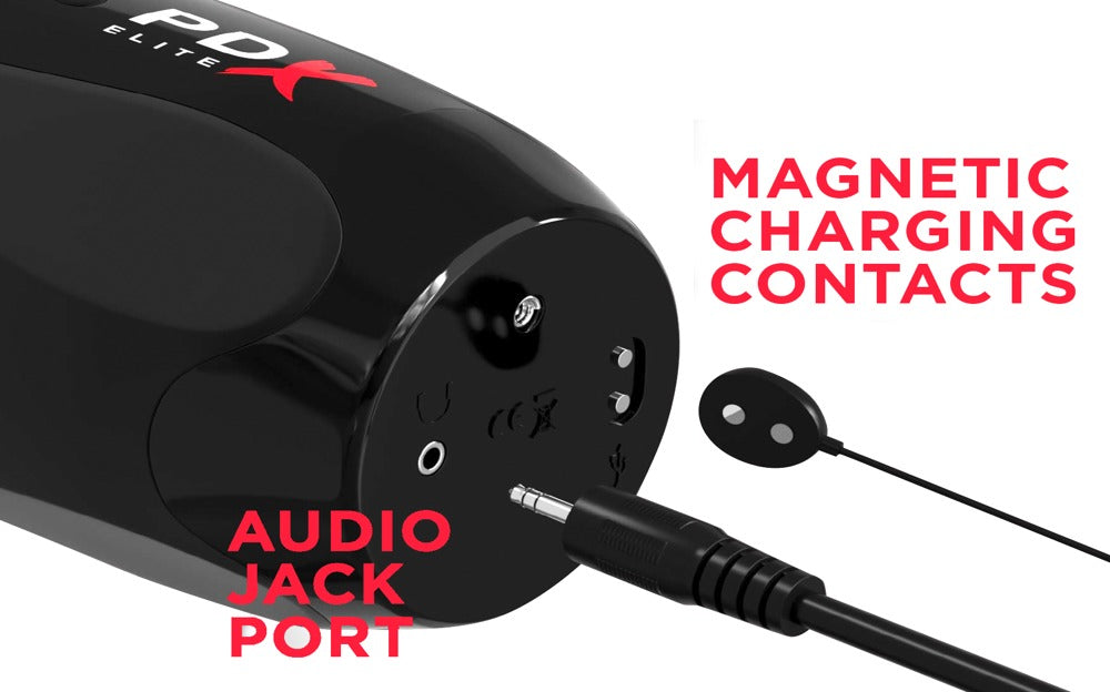 Vibrates, rotates and milks in an even more intense way! The masturbator Ultimate Milker 2 from PDX Elite pleasures the penis with intense vibrations (10 modes) and a powerful circling, spiral milking function (7 modes) – everything can be controlled at the push of a button. Everything can be seen through the window that is lit up by LED lights and this can be extremely arousing. The light and sexy moans will add the finishing touch to this realistic experience – the included headphones can be used to enjoy the moans in a discreet way. The soft and flexible inner sleeve, with its skin-like texture, has numerous dots that massage the penis intensely. The sleeve can be removed for cleaning. The masturbator can also be stored safely and discreetly with its lid that also protects it from dust. The masturbator also has a strong suction cup that sticks securely to any smooth surface. The masturbator can then be bent in different positions. The suction cup also means that it's perfect for hands-free fun. Rechargeable – includes a magnetic charger. Complete length 27 cm, insertion depth 12.7 cm, outer Ø 8.4 cm, inner Ø 1.5 cm - 5.1 cm. ABS, TPE.