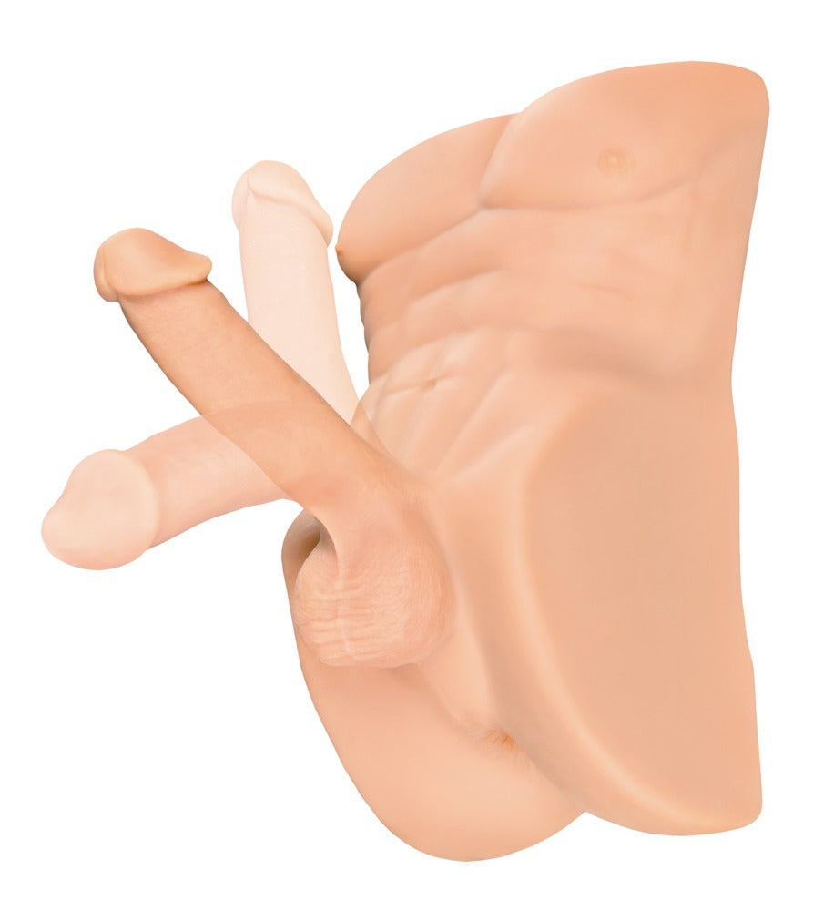 For wild rides and anal pleasure – extremely realistic! Male torso Perfect Ride from PDX Plus with a penis that can be moved in any direction, large testicles and a welcoming anus hole. The masturbator with a muscular chest and a six-pack has higher hips in the new EZ Bang design for a more comfortable ride. The anus hole is also in a slightly higher position than usual and therefore at a perfect angle for comfortable penetration. The tight pleasure canal has various stimulating textures on the inside and feels almost like a real anus. The masturbator is made out of skin-like Fanta Flesh material that feels incredibly realistic. The soft, smooth material warms up to body temperature very quickly. The torso weighs almost 5 kg which means that it lies securely on any smooth surface without slipping. It also means that a person can ride the sturdy penis (that can be moved in any direction) in any position they want. 33.3 cm long, 21.6 cm wide, 29.9 cm high. Penis: insertion length 15.2 cm, Ø 4 cm. Anus hole: insertion depth 14 cm. Weight: 4.7 kg. TPE.