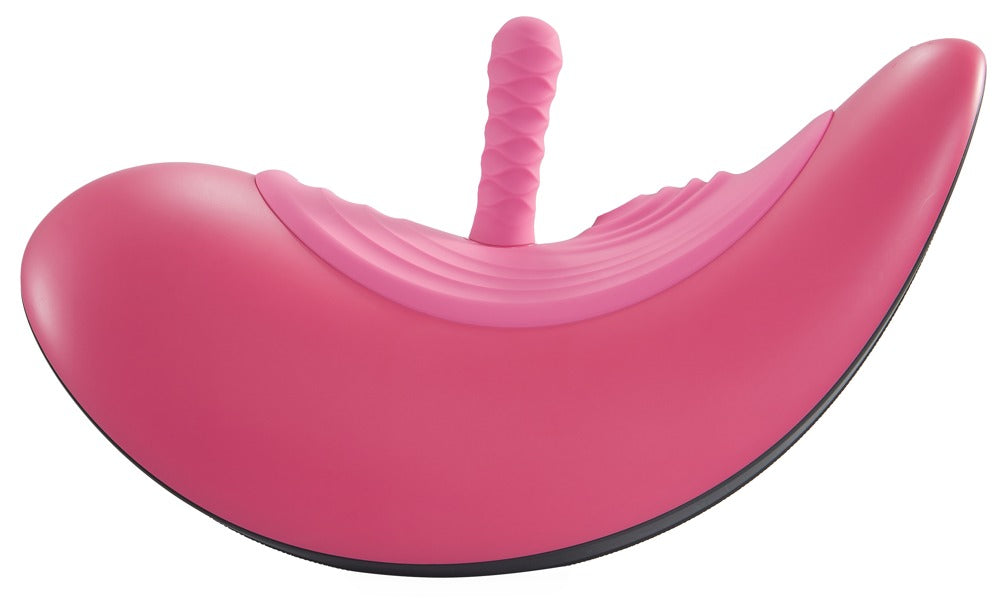 For pleasurable rides with depth! The innovative vibepad RIDE ON is great for a hands-free ride with pulsating clitoral stimulation and deep vaginal fun. Rock from one wave of pleasure to the next on the ergonomic love rocker. The intensely throbbing vibepad and the 3 additional powerful penetrators will provide the ultimate orgasms, thanks to internal and external stimulation. Everything can be easily controlled with the remote control. Elegant. Comfortable. Precise. A person can sit on the curve of the solo sex rocker – there is velvety soft silicone on the curve which has gentle grooves that can transfer the pulsating thumping impulses perfectly to the vulva and directly to the clitoris. The 3 different silicone attachments (included) can be easily inserted. Each of the stimulators stands out because of their pleasurable designs and their various intense functions: one thrusts, one vibrates and one pleasures with thumping impulses. There is a quiet but powerful motor in the vibepad rocker and in each stimulator. This means that the individual functions can be controlled together or separately in exciting ways. The functions can either be controlled directly on the vibepad RIDE ON or via the practical remote control (range 10 metres). The vibepad rocker pulsates so that it can pleasure the vulva and clitoris with thumping impulses (Tapping) in 13 modes. In addition to that, one of the stimulators can pleasure the vagina deep inside. The 6 thrusting modes, 7 vibration modes or the thumping impulses (Tapping) in 13 modes will definitely provide diverse fun. The vibepad RIDE ON is particularly user-friendly and intuitive. Its non-slip silicone base means that the compact solo sex rocker will stand/rock firmly and securely on any flat surface. For carefree, rocking delight with complete comfort. Rechargeable – includes a USB-C cable and battery (CR2032) for the remote control. vibepad rocker: 44.1 cm long, max. 24.5 cm wide, 24.5 cm high. Thrusting dildo: 13.4 cm long, insertion length 10 cm, Ø 2.6 cm – 3.1 cm. Weight 105 g. Vibrator: 15.8 cm long, insertion length 12.5 cm, Ø 3 cm – 3.7 cm. Weight 117 g. Tapping stimulator: 15 cm long, insertion length 12 cm, Ø 3 cm – 3.2 cm. Weight 98 g. ABS, silicone, PU.